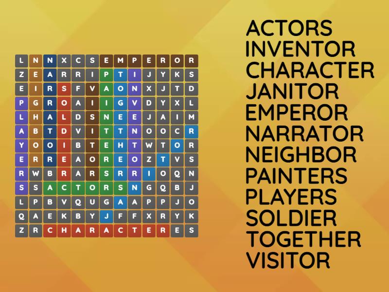 Actors, inventor, character, janitor, emperor, narrator, neighbor, painters, players, soldier, together, visitor,