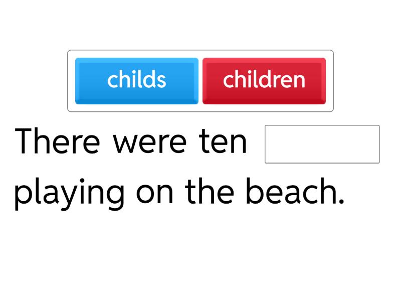 There were ten ____ playing on the beach. Maggie lost one ____ last week. We saw five ____ at the farm. I have two ____ The cinema was full of ____ I have two ____ as pets. The ____ turn red in autumn. I saw a ____ walking to the park. There are 6 ____ outside my window. My teachers are all ____