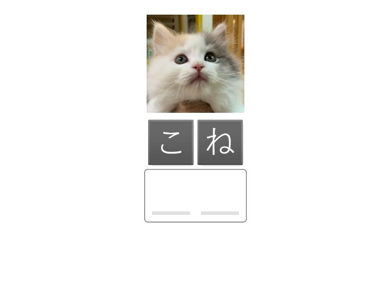 ねこ , ねっこ, しっぽ, らっこ, せっけん, まつぼっくり, はっぱ, おにごっこ, にっき, がっこう,
