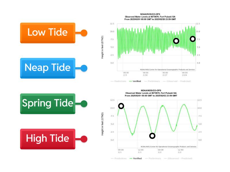 Neap Tide, High Tide, Low Tide, Spring Tide.