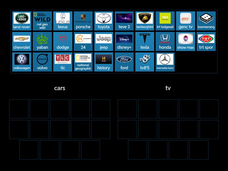 cars: volvo, porsche, chevrolet, ford, honda, mercedes benz, lexus, dodge, toyota, volkswagen , jeep, land rover, tesla, lamborghini, tv: yaban, nat geo wild, history, tv8'5, 24, boomerang, genc tv, show max, teve 2, trt spor, tlc, trt belgesel, disney+, national geographic,