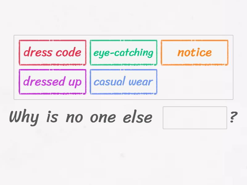 Why is no one else ____? They changed the ____ to ____. Maybe no one will ____ me...? Your dress is so fancy and ____!