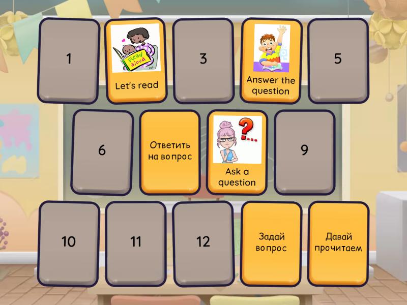 Ask a question - Задай вопрос, Answer the question - Ответить на вопрос, Let's read - Давай прочитаем, Repeat please - Повтори, пожалуйста, I don't remember - Я не помню, I don't know - Я не знаю, translate - Переведи,