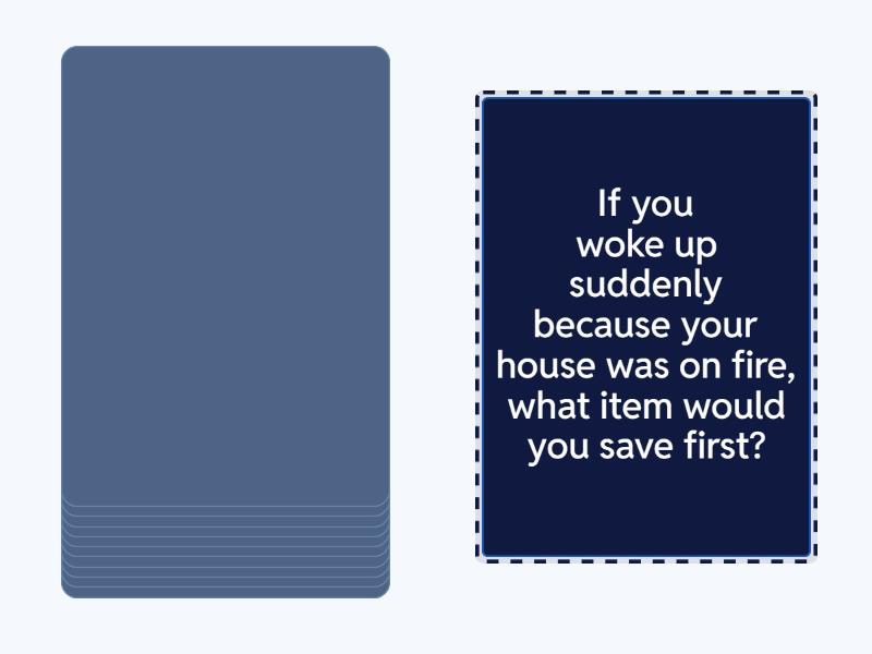 If you could stay one age forever, what age would it be?, If you won the lottery, what would you do? , If you woke up suddenly because your house was on fire, what item would you save first?, If you could only eat one food for the rest of your life, what would you choose?, If you could meet anyone, dead or alive, who would you choose to meet?, If you could travel in time, would you prefer to see the future or the past?, If you had the choice to have no children or ten children, what would you choose?, If you could have any job, what job would you like to have?, If you didn’t need sleep, how would you spend your nights?, If you were invisible for a day, what would you do?, If you could give yourself one skill, what skill would it be?.