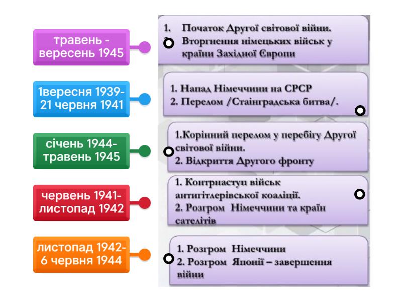 1вересня 1939- 21 червня 1941, червень 1941- листопад 1942 , листопад 1942- 6 червня 1944, січень 1944- травень 1945 , травень - вересень 1945.