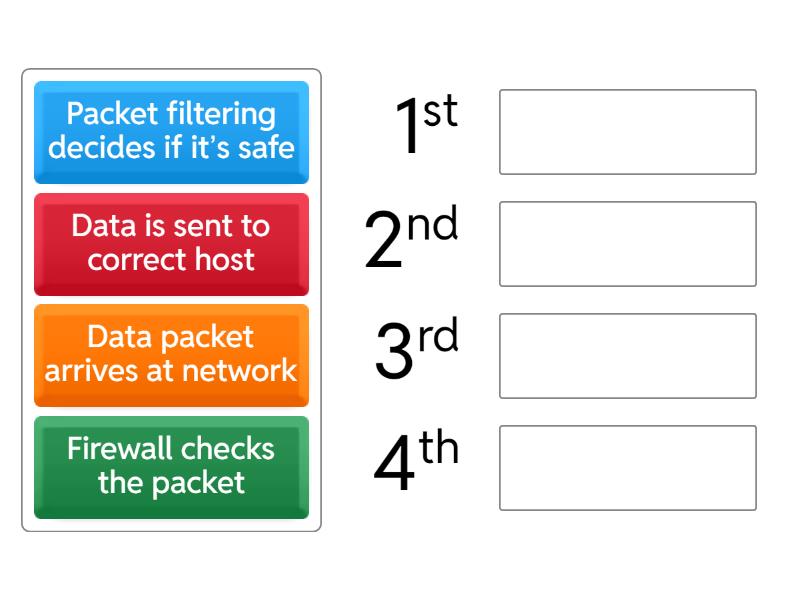 Data packet arrives at network, Firewall checks the packet, Packet filtering decides if it’s safe, Data is sent to correct host.