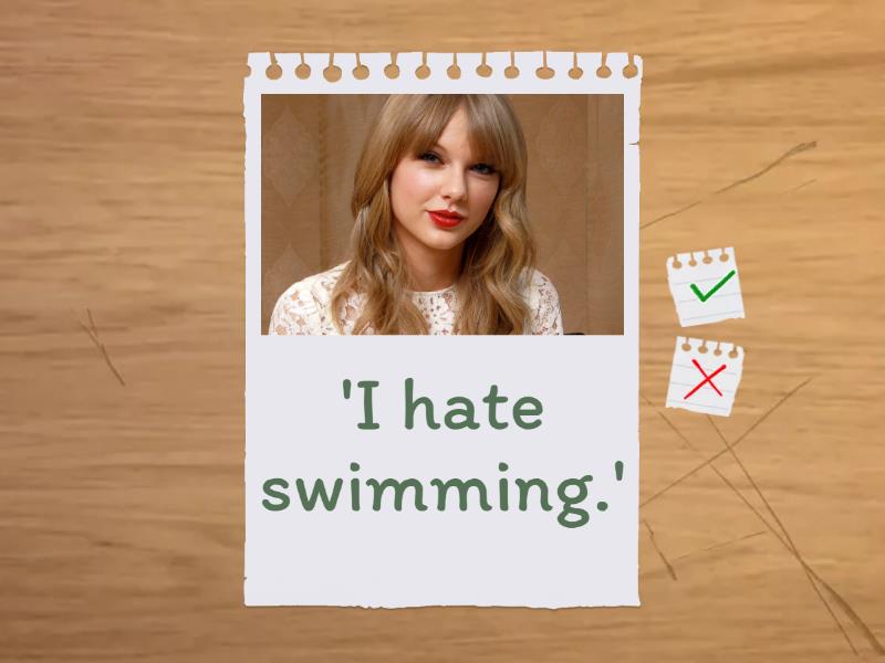 'I love bread!', 'I hate swimming.', 'I never eat breakfast.', 'I have a dog.', 'I live in California.', 'I don't like cycling.', 'I'm listening to music.', 'I'm relaxing on the beach.',