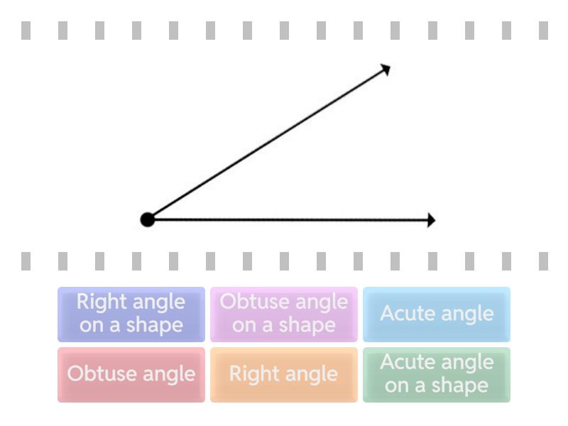 Acute angle, Obtuse angle, Right angle, Acute angle on a shape, Obtuse angle on a shape, Right angle on a shape,