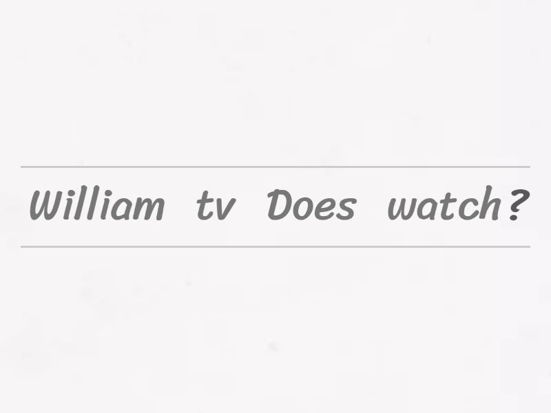 Does William watch tv?, Do you go shopping on Sundays?, Do the students come to school by bus?, Do you live near your best friend?, Do the girls play football?, Do we have lunch at 1 o'clock?, ? Do they go bowling on Saturdays?, Does she eat lunch at school?, Do you like coffe?, Do they study everyday?,