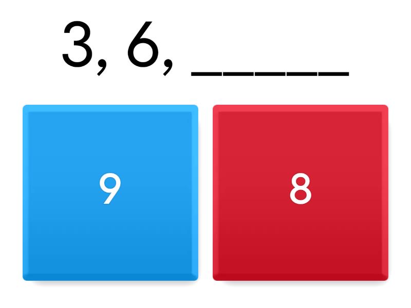 1) 3, 6, _____ a) 9 b) 8 2) 9, 12, _____ a) 16 b) 15 3) 15, 18, a) 20 b) 21 4) 21, 24, ____ a) 27 b) 28 5) 27, 30, ____, ______ a) 32, 33 b) 33, 36