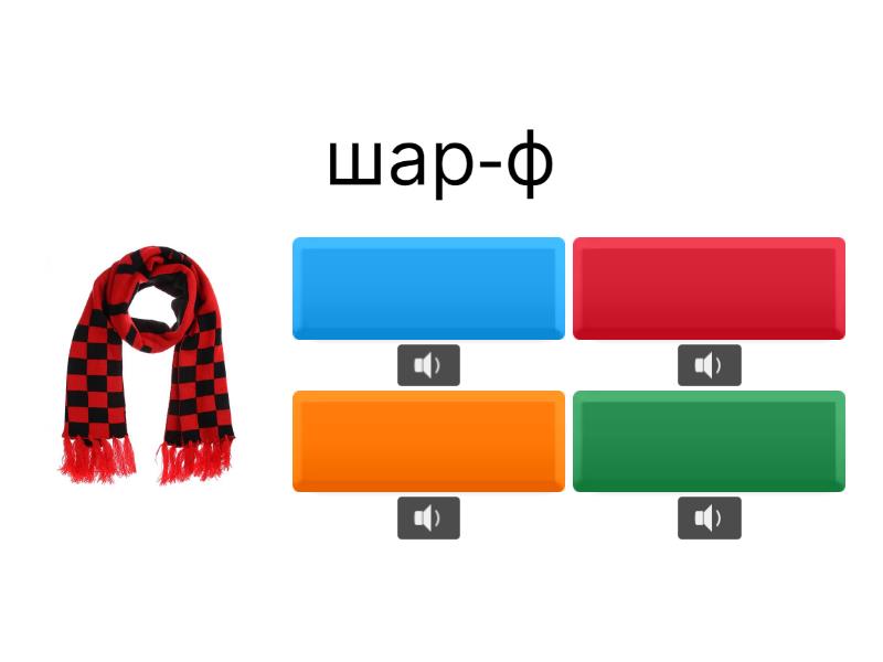 1) шар-ф a) b) c) d) 2) шиш-ка a) b) c) d) 3) куль-ка a) b) c) d) 4) па-лац a) b) c) d) 5) дош-ка a) b) c) d)