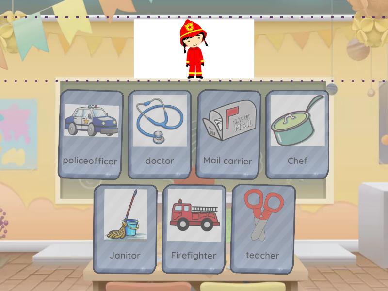 Firefighter, policeofficer, teacher, doctor, Mail carrier , Janitor, Chef,