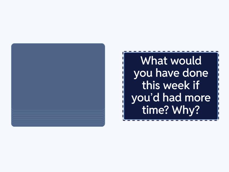 What will you do when you retire?, If there suddenly was no internet, how would the world change?, If you survived a plane crash in the jungle, how long would you survive?, If you could eat only one thing for the rest of your life, what would that be?, If it was possible, would you like to have your own clone?, What university would you choose if you could enter any one of them?, What would you do if you saw a person shoplifting?, If you had enough money to giveaway, who would you help?, If you had to watch a TV show for 24 hours, what would that show be?, If you could be a DC Comics super hero, who would you like to be?, What would you have done this week if you’d had more time? Why?.