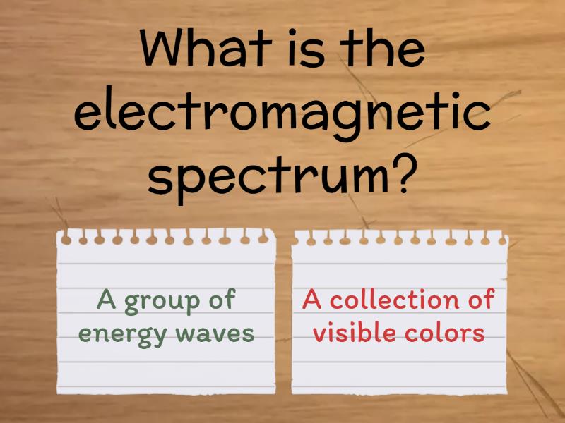1) What is the electromagnetic spectrum? a) A group of energy waves b) A collection of visible colors 2) Which is part of the electromagnetic spectrum? a) Sound waves b) X-rays 3) What part of the spectrum can humans see? a) Visible light b) Radio waves 4) Which wave is used in microwaves? a) Microwaves b) Infrared waves 5) Which wave is used in hospitals? a) X-rays b) Ultraviolet rays 6) Do electromagnetic waves need air? a) No, they can travel in space b) Yes, they need air 7) Which wave has the highest energy? a) Gamma rays b) Radio waves 8) What wave is used in remote controls? a) Infrared waves b) Gamma rays 9) What is true about UV light? a) It is not part of the spectrum b) It can harm skin 10) Which wave helps us hear radio music? a) Radio waves b) Microwaves