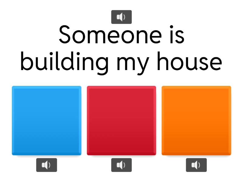 1) Someone is building my house a) b) c) 2) I need someone to cut my hair! a) b) c) 3) I need to paint my bedroom a) b) c) 4) My shower is broken, I need someone to fix it a) b) c) 5) Someone stole David's car! a) b) c) 6) She wants someone to wash her hair! a) b) c) 7) He needs to do the report a) b) c)