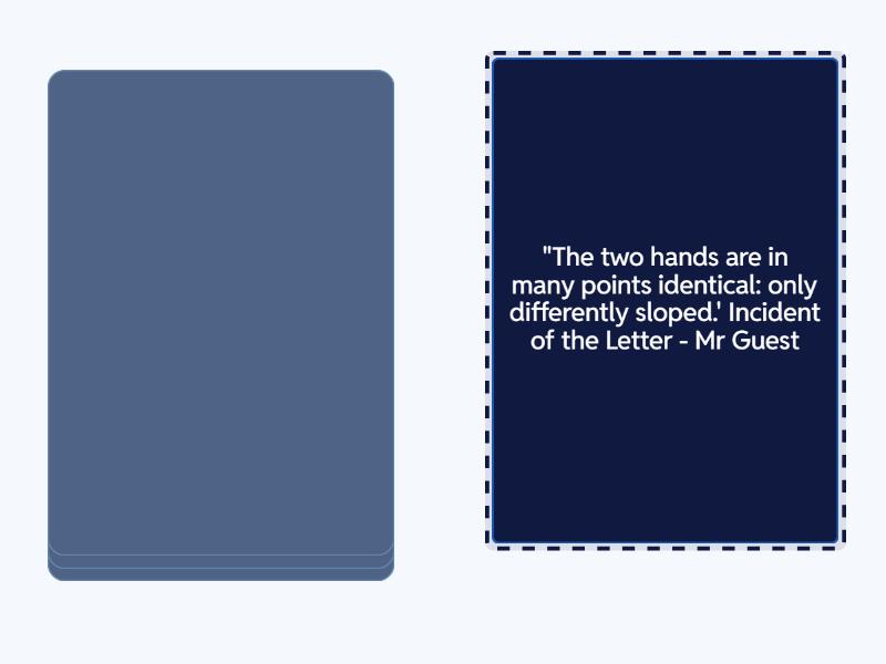 "The two hands are in many points identical: only differently sloped.' Incident of the Letter - Mr Guest, 'I concealed my pleasures; and that when I reached years of reflection, and began to look round me and take stock of my progress and position and position in the world, I stood already committed to a profound duplicity of me.' Dr Jekyll -Henry Jekyll's Full Statement of the Casee, '...severed in me those provinces of good and ill which divide and compound man's dual nature.' Dr Jekyll -J and JJ's full statement of the case, "It was the curse of mankind that these incongruous faggots were thus bound together—that in the agonised womb of consciousness, these polar twins should be continuously struggling." Dr. Jekyll -Full statement of the case.
