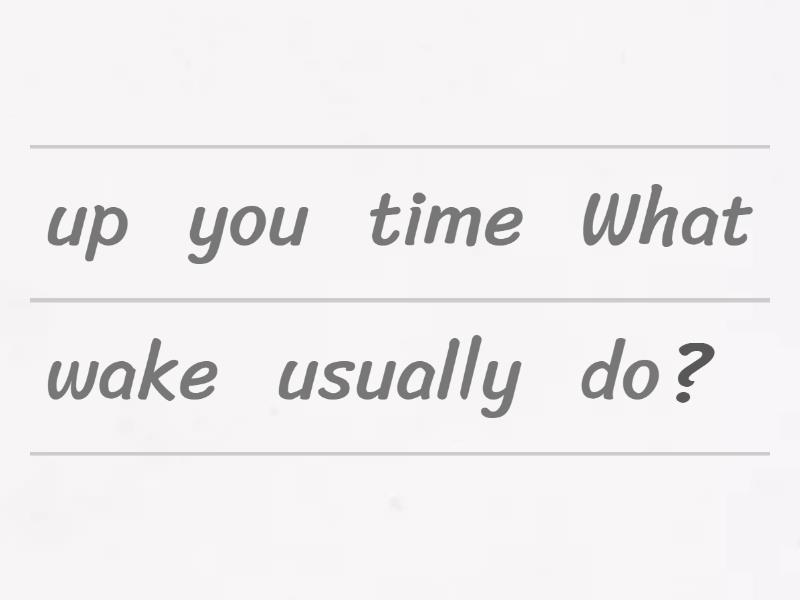 What time do you usually wake up?, I always eat breakfast at 7:00., Where do they often go on Sundays?, She usually watches TV after dinner., Why do you always eat fruit in the morning?, They don’t often eat fast food., When does she usually go to bed?, We sometimes play soccer on the weekend., How often do you go to the supermarket?, He never drinks coffee in the evening., When do we never have class?, I don’t always do my homework at night., Who usually cooks dinner at home?, My parents always cook on Sundays., Where does he usually eat lunch?, My brother usually gets up at 6:30., What do you sometimes eat for lunch?, She doesn’t usually drink tea., What do your parents always do on Friday?, Do you always walk to school?, He is always tired on Mondays., We are usually early for class., I’m sometimes late in the morning., They aren’t often noisy in class., She isn’t always happy at work.,