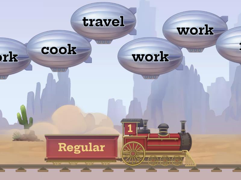 play - Regular, work - Regular, travel - Regular, start - Regular, finish - Regular, walk - Regular, cook - Regular, fly - Regular, go - Irregular, see - Irregular, write - Irregular, buy - Irregular, make - Irregular, take - Irregular, send - Irregular, find - Irregular, think - Irregular, have - Irregular, get - Irregular, read - Irregular,