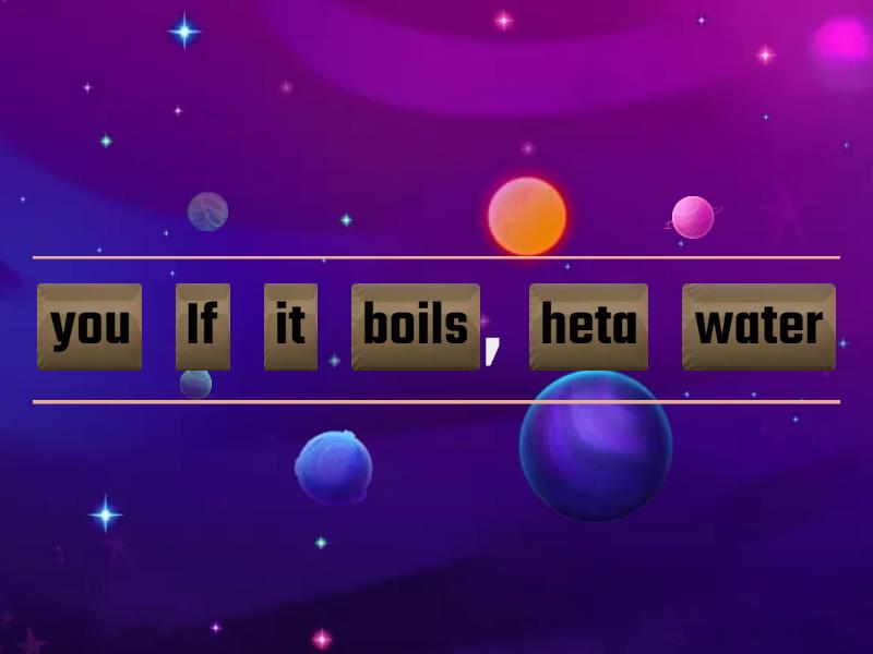 If you heta water, it boils, If the sun shines, it gets warm, If you boil an egg, it hardens, If you cook, I´ll clean the dishes, If you save money, you will afford for your vacation, If he finishes the project, he will get a promotion, If you work late, you get tired, If you touch fire, you get burned, If you drop something, you will pay for it, If it rains, the grass gets wet, If you skip meals, you will feel hungry,