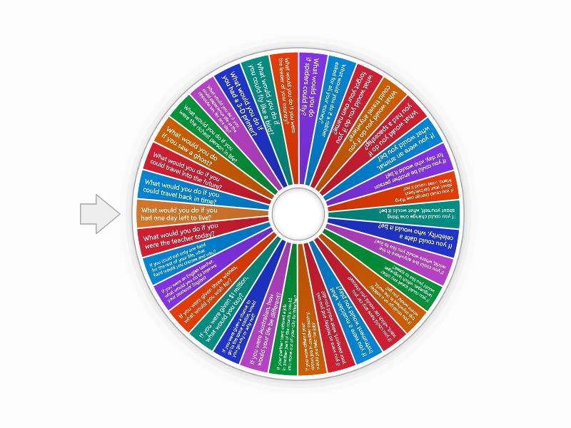1) What would you do if you could travel back in time?  2) What would you do if you could travel into the future?  3) What would you do if you saw a ghost?  4) What would you do if you were the richest person in life? 5) What would you do if you could experience life as the opposite sex for one day? 6) What would you do if you had a 3-D printer?  7) What would you do if you could fly like a bird? 8) What would you do if you were the leader of your country?  9) What would you do if spiders could fly?  10) What would you do if a robber asked for all your money?  11) what would you do if you forgot your own name? 12) What would you do if you could travel anywhere?  13) What would you do if you had a spaceship? 14) If you were an animal, what would you be? 15) If you could be another person for day, who would it be? 16) If you could change one thing about your partner/best friend, what would it be? 17) If you could change one thing about yourself, what would it be?  18) If you could date a celebrity, who would it be?  19) If you could live anywhere in the world, where would you like to live? 20) If you could speak any other languages, which languages would you like to speak?  21) If you could go on a holiday trip anywhere in the world, where would you go? 22) If you could have any car you want, which car would you choose? 23) If you were a musician, what instrument would you play? 24) if you were on holiday and you lost your passport, what would you do?  25) If you were offered your dream job in another country, would you take the job?  26) If your partner were offered a job in another part of the country, would you move out of your city for him/her? 27) If you were Australian, how would your life be different? 28) If you were given a chance to go to the space station, would you go why or why not? 29) If you were given $1 million, what would you buy? 30) If you were given three wishes, what would you wish for? 31) If you were an English teacher, what would you do to improve your students' English? 32) If you could eat only one food for the rest of your life, what food would you choose and why? 33) What would you do if you were the teacher today? 34) What would you do if you had one day left to live?