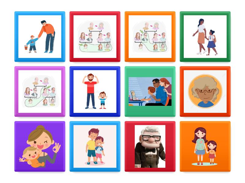 brother , dad / father , grandad / grandfather , granny / grandmother , mum / mother , sister , son , daughter , aunt , uncle , cousin , parents ,