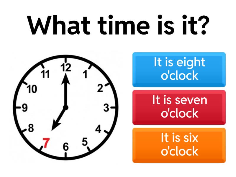 1) What time is it? a) It is eight o'clock b) It is seven o'clock c) It is six o'clock 2) What time is it? a) It is twelve o'clock b) It is eleven o'clock c) It is nine o'clock 3) What time is it? a) It is seven o'clock b) It is seven thirty 4) What time is it? a) It is five o'clock. b) It is three o'clock. c) It is four o'clock. 5) What time is it? a) It is five o'clock b) It is five thirty 6) What time is it? a) It is nine o'clock. b) It is eight o'clock. c) It is ten o'clock. 7) What time is it? a) It is five o'clock. b) It is twelve o'clock. c) It is eleven o'clock. 8) What time is it? a) It is two o'clock. b) It is two thirty 9) What time is it? a) It is ten o'clock b) It is ten thirty 10) What time is it? a) It is six o'clock b) It is six thirty