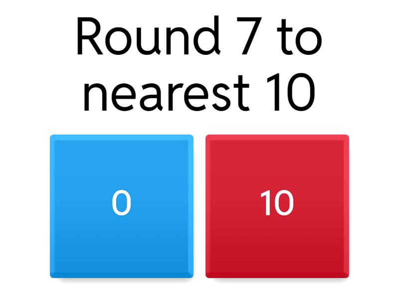 1) Round 7 to nearest 10 a) 0 b) 10 2) Round 13 to nearest 10 a) 0 b) 10 c) 20 3) Round 22 to the nearest 10 a) 20 b) 30 4) Round 38 to the nearest 10 a) 30 b) 40 5) Round 75 to the nearest 10 a) 70 b) 80 6) Round 66 to the nearest 10 a) 60 b) 70 c) 80