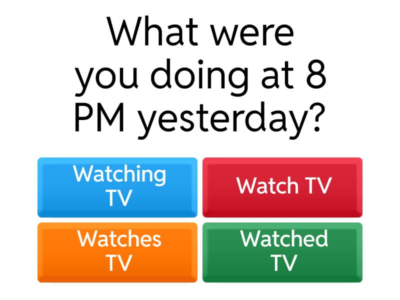 1) What were you doing at 8 PM yesterday? a) Watching TV b) Watch TV c) Watches TV d) Watched TV 2) They ___ when the phone rang. a) were sleeping b) sleep c) slept d) sleeping 3) She ___ to music while studying. a) was listening b) listened c) listens d) listen 4) We ___ dinner when the lights went out. a) were having b) had c) have d) having 5) He ___ when I called him. a) was working b) worked c) work d) works 6) The children ___ in the park. a) were playing b) play c) played d) plays 7) I ___ a book when you arrived. a) was reading b) read c) reads d) reading 8) She ___ a letter while he was cooking. a) was writing b) wrote c) writes d) write 9) They ___ a movie when the storm started. a) were watching b) watch c) watched d) watches 10) We ___ to music when the doorbell rang. a) were listening b) listened c) listen d) listens 11) He ___ the car when it began to rain. a) was washing b) washed c) washes d) wash 12) I ___ when the alarm went off. a) was sleeping b) slept c) sleep d) sleeps 13) She ___ a cake when I arrived. a) was baking b) baked c) bakes d) bake 14) They ___ in the garden when it started to rain. a) were working b) worked c) work d) works 15) We ___ a movie when the power went out. a) were watching b) watched c) watch d) watches 16) He ___ a letter when I saw him. a) was writing b) wrote c) writes d) write 17) I ___ my homework when the phone rang. a) was doing b) did c) do d) does 18) She ___ the dishes when I called. a) was washing b) washed c) washes d) wash 19) They ___ a game when it started to rain. a) were playing b) played c) play d) plays 20) We ___ dinner when the guests arrived. a) were having b) had c) have d) having