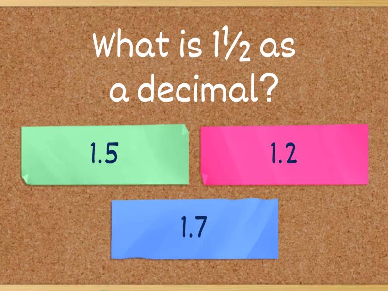 1) What is 1½ as a decimal? a) 1.5 b) 1.2 c) 1.7 2) Convert 2¼ to a decimal. a) 2.5 b) 2.25 c) 2.75 3) What is 3¾ as a decimal? a) 3.5 b) 3.75 c) 3.25 4) Convert 4⅓ to a decimal. a) 4.33 b) 4.3 c) 4.5 5) What is 5⅔ as a decimal? a) 5.67 b) 5.8 c) 5.7890 6) Convert 6⅛ to a decimal. a) 6.12 b) 6.18 c) 6.08 7) What is 7⅞ as a decimal? a) 7.88 b) 7.875 c) 7.85 8) Convert 8⅝ to a decimal. a) 8.62 b) 8.625 c) 8.6 9) What is 9⅜ as a decimal? a) 9.38 b) 9.375 c) 9.35 10) Convert 10⅞ to a decimal. a) 10.88 b) 10.875 c) 10.85