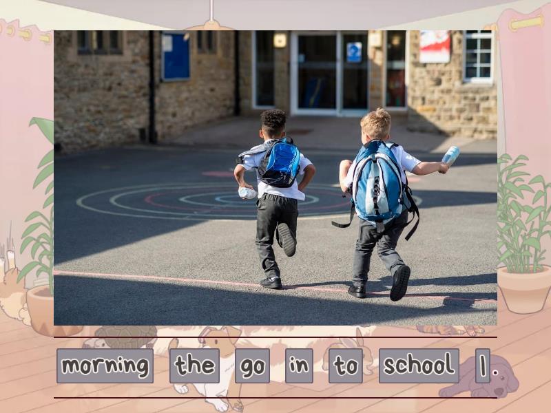 I go to school in the morning., I do homework in the evening., I wake up in the morning., I brush my teeth in the evening., I go home in the afternoon., I have class in the afternoon.,