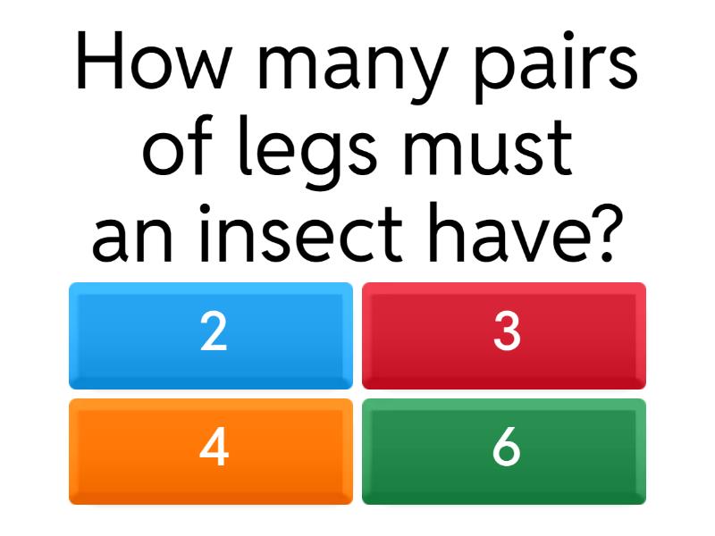 1) How many pairs of legs must an insect have? a) 2 b) 3 c) 4 d) 6 2) What is another name for an insect’s feelers? a) Legs b) Antennae c) Wings d) Mandibles 3) Most insects have how many pairs of wings? a) 1 b) 2 c) 3 d) None 4) Why is a spider not an insect? a) It has no wings b) It is too big c) It has 8 legs, not 6 d) It lives indoors 5) Which of the following is not an insect? a) Beetle b) Fly c) Ladybird d) Snake 6) What is a ladybird really classified as? a) Butterfly b) Beetle c) Bug d) Ant 7) How many types of ladybirds are there? a) 35 b) 350 c) 3,500 d) 35,000 8) What is the most common number of spots on a ladybird? a) 5 b) 7 c) 10 d) 0 9) What colour are most ladybirds underneath their red wings? a) Blue b) Yellow c) Black d) Green 10) What do true bugs use their sharp mouth-parts for? a) Flying b) Singing c) Sucking juices d) Digging 11) What shape is a ladybird’s body? a) Round b) Oval c) Triangular d) Flat 12) Do cockroaches have wings? a) Yes b) No c) Only females d) Only during summer 13) What makes cockroaches dangerous? a) They fly too fast b) They carry germs c) They are venomous d) They are loud 14) Where do cockroaches often hide? a) In trees b) Under floorboards c) On rooftops d) In ponds 15) Why can cockroaches live in many places? a) They are cold-blooded b) They eat only fresh food c) They are small and flat d) They travel in groups