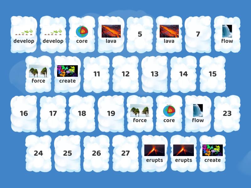 core, create, develop, force, erupts, flow, lava, magma, rock, island, sea, merchant, vines, insects, ash,