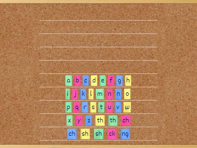 a , b, c, d, e, f, g, h, i, j, k, l, m, n, n, o, p, q, r, s, t, u, v, w, x, y, z, th, th, ch, ch, sh, sh, ck, ng.