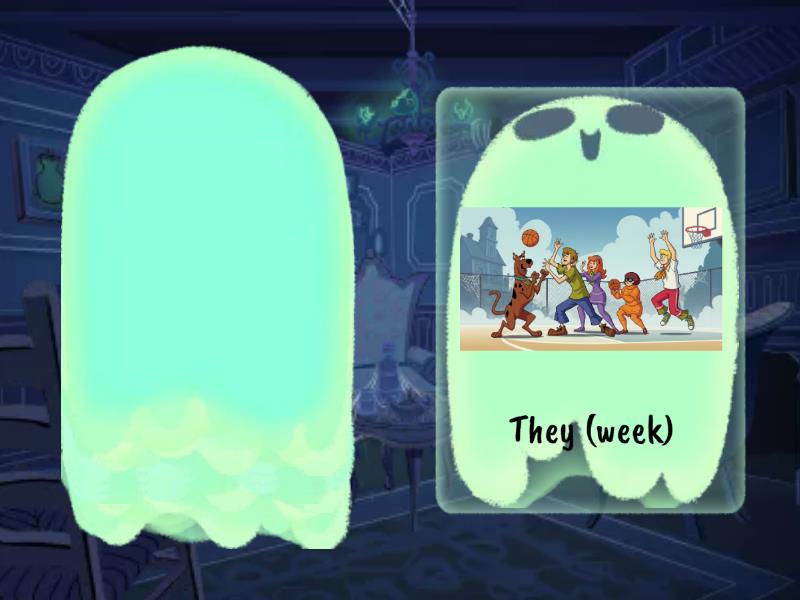 They (Friday), Shaggy and Velma (Tuesday), Daphne and Fred (weekend), Fred (day), Velma (daily), Shaggy (day), Scooby (Sundays), Scooby and Shaggy (Wednesday- Friday), Daphne (Thursdays), They (week), Scooby and Shaggy (weekends), Fred (Monday - Sunday).