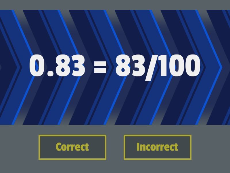 Decimals to Fractions Level 1: true false