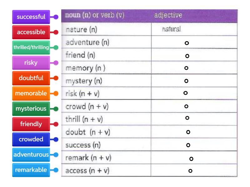 adventurous , friendly , memorable , mysterious , risky , crowded , thrilled/thrilling , doubtful , successful , remarkable , accessible .
