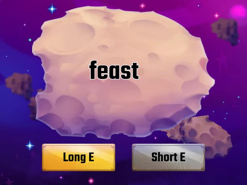 Long E: feast, squealing, beard, meanwhile, ear, sneak, measles, peach, wheat, peanut, beast, easel, beads, dream, beak, peacock, healer, Short E: thread, sweat, dead, healthy, dreadful, breath, bread, wealthy, weapon, head, meadow, bed, feather, sweater, deaf,