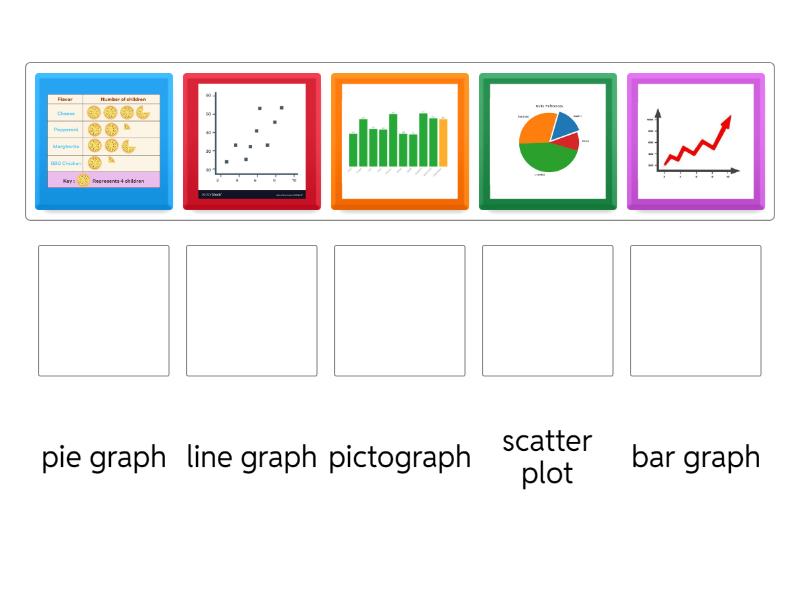 pictograph, scatter plot, bar graph, line graph, pie graph,