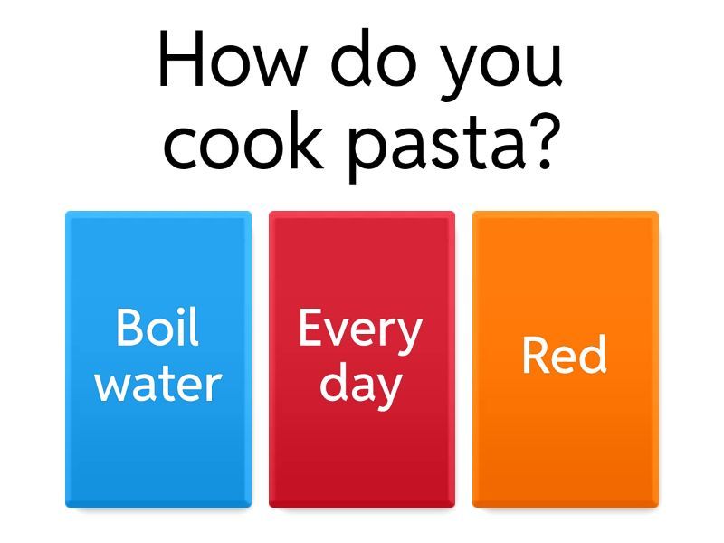 1) What do you do? a) I am Teacher b) every day c) Quickly 2) Where do you live? a) In New York b) Every day c) Blue 3) When do you wake up? a) At 7 AM b) In the park c) Fast 4) Who is your teacher? a) Mr. Smith b) In the morning c) Red 5) Why do you study? a) To learn b) At school c) Slowly 6) How do you go to school? a) By bus b) In the evening c) Green 7) What time do you eat lunch? a) At noon b) In the garden c) Quickly 8) Where do you work? a) At an office b) Every night c) Yellow 9) When do you exercise? a) In the morning b) In the car c) Slowly 10) Who is your best friend? a) Anna b) At home c) Blue 11) Why do you like reading? a) It's fun b) In the library c) Fast 12) How do you cook pasta? a) Boil water b) Every day c) Red 13) What do you drink? a) Water b) In the park c) Quickly 14) Where do you shop? a) At the mall b) In the morning c) Yellow 15) When do you sleep? a) At night b) In the garden c) Slowly