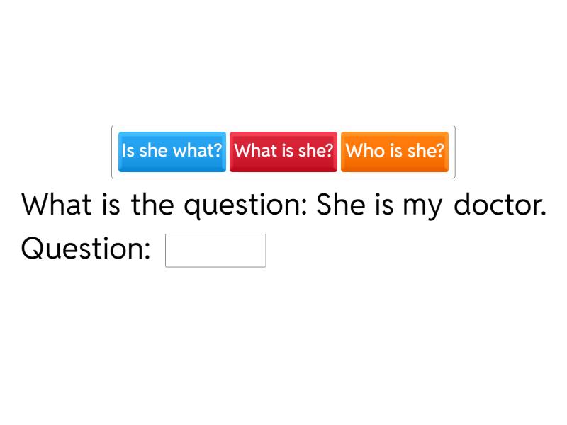 What is the question: She is my doctor. Question: ____ What is the question: Mr. Smith is writing a letter. Question: ____ What is the question: The soldiers were late for chow. Question: ____ What is the question: The helmet was first worn in the Army/Navy football game. Question: ____ What is the question: Cows are raised for meat and milk. Question: ____ What is the question: They have been studying English for three years. Question: ____ What is the question: She can tell me how to change a tire. Question: ____ What is the question: The students did their homework last night. Question: ____
