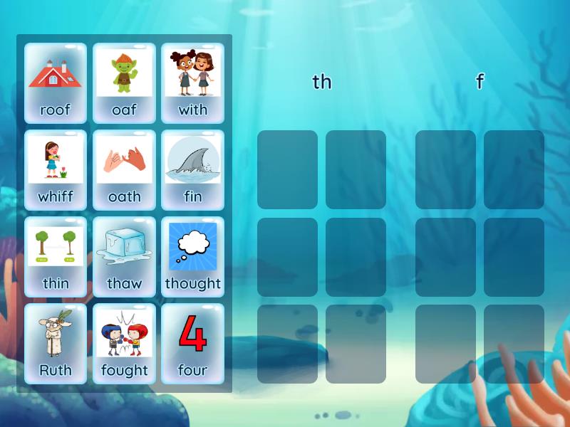 th: thin, oath, thaw, fought, Ruth, with, f: fin, oaf, four, thought, roof, whiff,