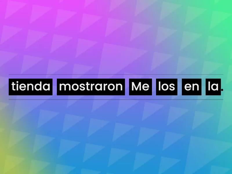 Me lo dieron ayer en la reunión., Te la voy a enviar por correo electrónico., Se lo explicamos varias veces, pero no lo entendió., Nos los trajeron desde España., Os la recomendaron porque es muy buena., Se las mostré a mis amigos anoche., Me lo contaron en secreto., Te los voy a dar mañana., Se lo dije a mi jefe ayer., Me los mostraron en la tienda.,