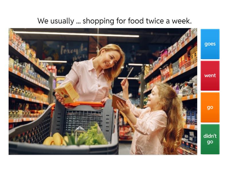 1) We usually ... shopping for food twice a week. a) goes b) went c) go d) didn't go 2) They ... in the mountains. a) were b) didn't be c) was d) didn't 3) What ... you usually ... at the weekends? a) do you do b) did you do c) does you do d) did you done 4) Sall often ... coffee at lunchtime. a) buy b) bought c) buys d) buyed 5) My colleague ... me the documents yesterday. a) don't leave b) wasn't leave c) doesn't leave d) didn't leave 6) What play ... you ... at the theatre last Sunday? a) do you watch b) did you watched c) were you watch d) did you watch 7) What time ... the accident ... yesterday? a) does the accident happen b) do the accident happen c) did the accident happen d) the accident happened 8) They ... to the village every weekend. a) don't go b) didn't go c) doesn't go d) weren't go 9) The weather ... cold and the children didn't go to the park last Saturday. a) is b) was c) are d) were 10) How ... you usually ... to your office? a) does you get b) did you get c) do you get d) was you get 11) I was busy and ... ... time to phone you yesterday. a) didn't have b) wasn't have c) didn't had d) doesn't have 12) Where ... you usually ... pizza? a) do you order b) did you order c) are you order d) were you order 13) Where ... the children now? - At the cinema. a) is b) was c) are d) were 14) My brother ... ... his car every day. a) don't use b) doesn't use c) didn't use d) isn't use 15) What hotel ... you ... at last summer? a) do you stay b) does you stay c) did you stay d) were you stay