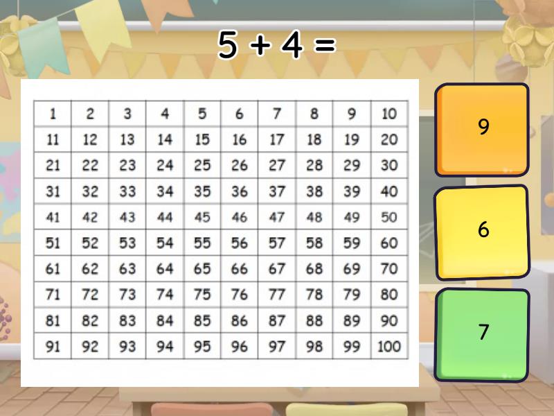 1) 5 + 4 = a) 9 b) 6 c) 7 2) 4 + 4 = a) 10 b) 12 c) 8 3) 3 + 2 = a) 7 b) 5 c) 6 4) 6 + 1 = a) 7 b) 8 c) 9 5) 9 + 1 = a) 12 b) 14 c) 10 6) 5 + 5 = a) 6 b) 10 c) 8