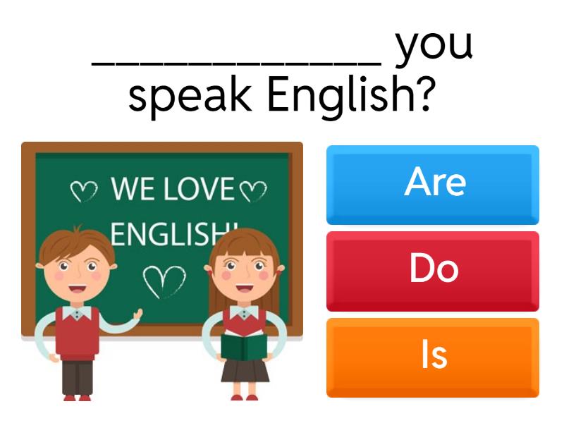 1) ____________ you speak English? a) Are b) Do c) Is 2) Matt and Julia are teachers. ____________ work at a college. a) He b) She c) They 3) We ____________ in this house. a) don't live b) lives c) are not live 4) ____________ drive a car? a) Are you b) Do you c) You do 5) Do you like bananas? Yes, I ____________. a) am b) don't c) do 6) _______ you a driver? a) Do b) Are c) Can 7) I have got a sister. ____________ live with our parents. a) She b) You c) We 8) How are ____________? a) this child b) she c) you 9) I don’t ____________. I’m a student.  a) works b) work c) working 10) Where_______they from? a) is b) do c) are 11) Dan_________fish. a) doesn't like b) don't like c) is not like 12) ______your mum a doctor? a) Does b) Is c) Are 13) What time_______you go to the gym? a) are b) is c) do 14) What______the time? a) is b) does c) do 15) Where ________your school? a) do b) does c) is 16) When ______you at home? a) are b) do c) is 17) I _______like to play hide-and-seek. a) don't b) 'm not c) isn't 18) These ________are my mum's friends. a) women b) woman c) womans 19) They are very funny___________. a) child b) childrens c) children 20) He is a very funny___________. a) child b) childrens c) children