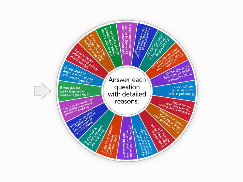1) If you could be anyone in the world, who would you be? 2) If you were an animal, what animal would you be? 3) If you went back in time, what year would you go to? 4) If you had a special power, what would you be able to do? 5) If you could make one change to the world, what would you do? 6) If you could change something about your past, what would you change? 7) if your sibling eats all your food what will you do ? 8) If you had billions and billions of dollars, how much would you give to charity, and which charities? 9) If the weather is good on Saturday. what will you do ? 10) if you get a new job offer what will you do ? 11) If you go to a restaurant this weekend, what will you order? 12) If you changed your name, what name would you choose? 13) If you take a trip soon, where will you go? 14) If you could decide what happens in your life tomorrow, what would you want to happen? 15) Where would you live if you could live anywhere in the world? 16) If you have dessert tonight, what will you have? 17) If you visit a friend this week, who will it be? 18) If the world was going to end tomorrow afternoon, what would you do up until that time? 19) If you were the world’s best at something, what would you like to be best at? 20) if you get up early tomorrow what will you do ?