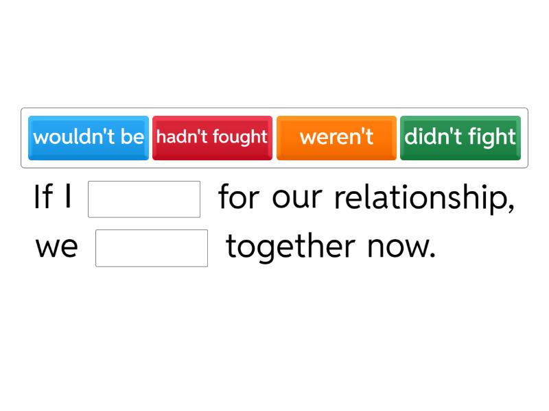 If I ____ for our relationship, we ____ together now. If you ____ a map, as I told you, we ____ lost now. If I ____ more time, I ____ you last night. The project ____ completed now if you ____ me more time. If we ____ the competition, we ____ now.