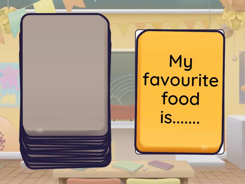 What is your name?, My name is....., How old are you?, I am .......years old., Where do you live?, I live in ......., What is your favourite colour?, My favorite colour is........, What is your favourite pet?, My favourite pet is......., What is your favourite sport?, My favourite sport is....., What is your favourite food?, My favourite food is........