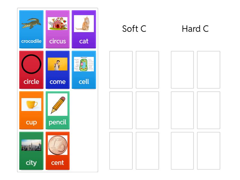 Soft C: cent, city, circus, circle, cell, pencil, Hard C: cat, cup, come, crocodile,