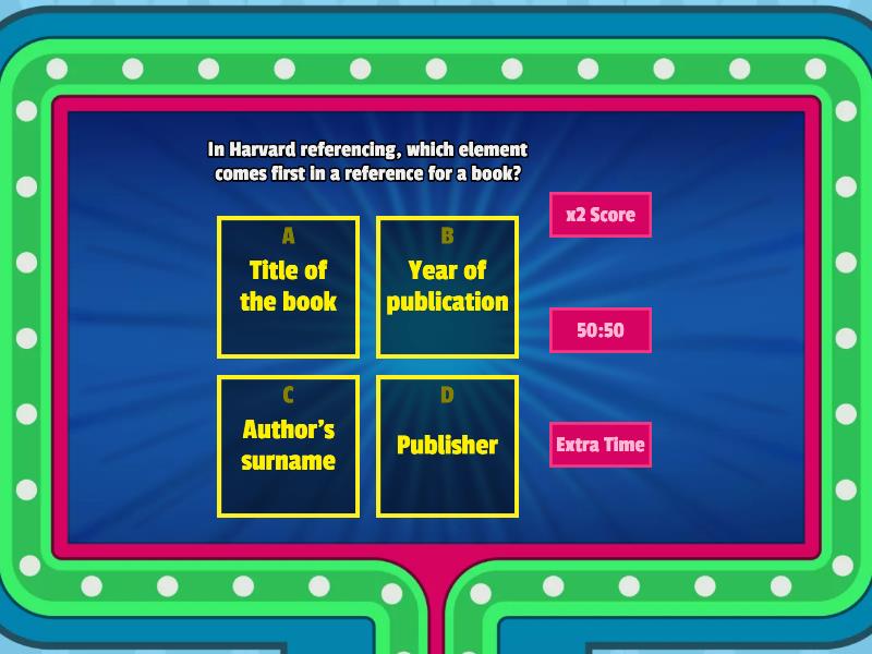 1) In Harvard referencing, which element comes first in a reference for a book? a) Title of the book b) Year of publication c) Author's surname d) Publisher 2) Which of the following is the correct in-text citation for a paraphrased idea from page 45 of a book by Smith published in 2018? a) (Smith 2018: 45) b) (Smith, 2018, p.45) c) (2018, Smith, p.45) d) (Smith, 2018; p.45) 3) How should multiple authors (four or more) be cited in-text using Harvard style? a) (Smith, Johnson, Lee & Patel, 2020) b) (Smith et al., 2020) c) (Smith and others, 2020) d) (Smith et al. 2020) 4) In a reference list entry for a journal article, what appears immediately after the author(s)? a) The volume number b) The journal name c) The year of publication d) The DOI number 5) Which of these is the correct way to reference a website in Harvard style? a) Author, Initial(s). (Year) Title of web page. Available at: URL (Accessed: Date). b) Title of web page. (Year). URL. Accesssed Date. c) URL. Accessed Date. d) Author (Year). URL (Retrieved: Date).
